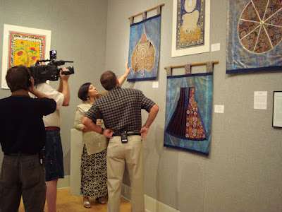 ArtXchange Gallery presents Indigo, a traveling exhibition previously exhibited in major cities throughout India and now crossing to the US, January 6 through February 26, 2011. The exhibition presents complementary bodies of artwork by Indian artist Shelly Jyoti and US artist Laura Kina in a range of media including hand-embroidery on khadi fabric, Sanskrit calligraphy and mixed-media on canvas. The narrative threads running throughout the artists’ work evoke India’s colonial history, stories of immigration, and the tensions and transformations of cultures evolving in a globalized world.